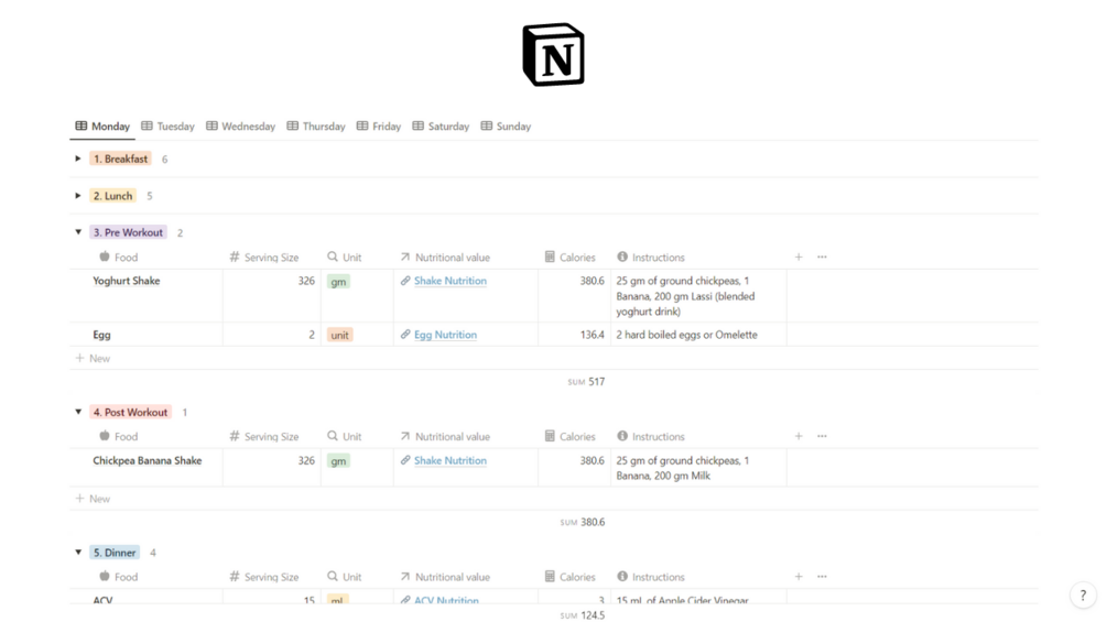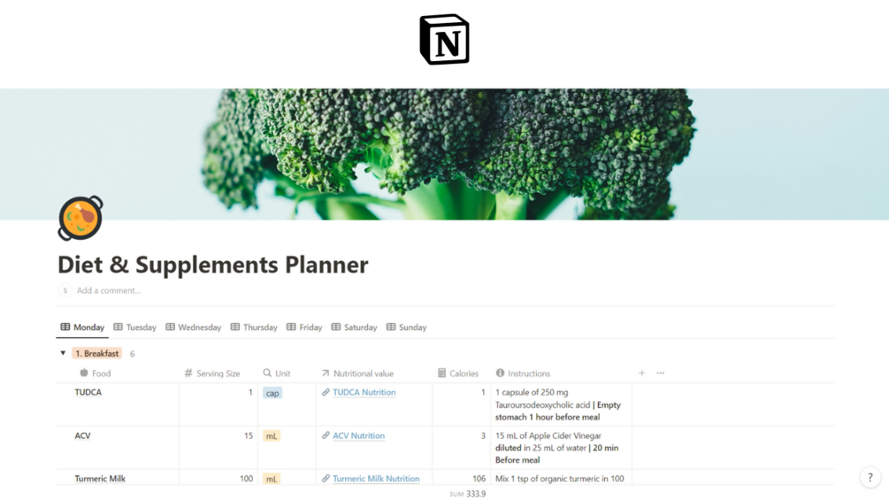 Diet & Supplements Planner - Notion Template